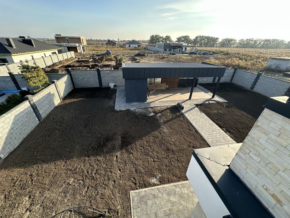 Вже підключено всі комунікації, зроблено паркан, змонтовані всі виводи для поливу, генератора, освітлення та багато іншого.