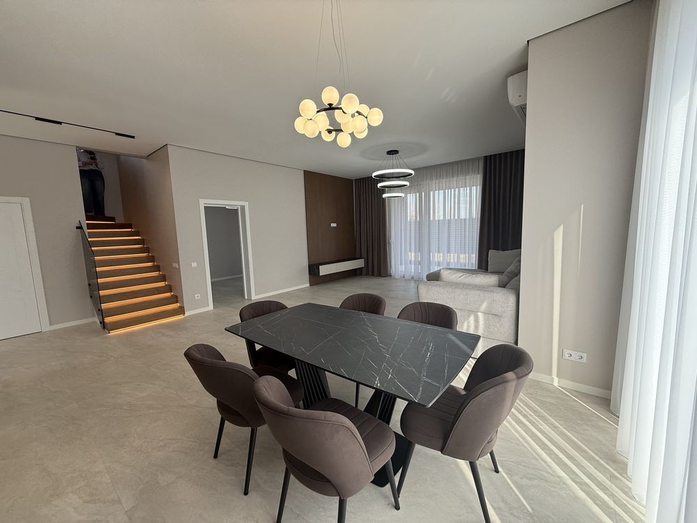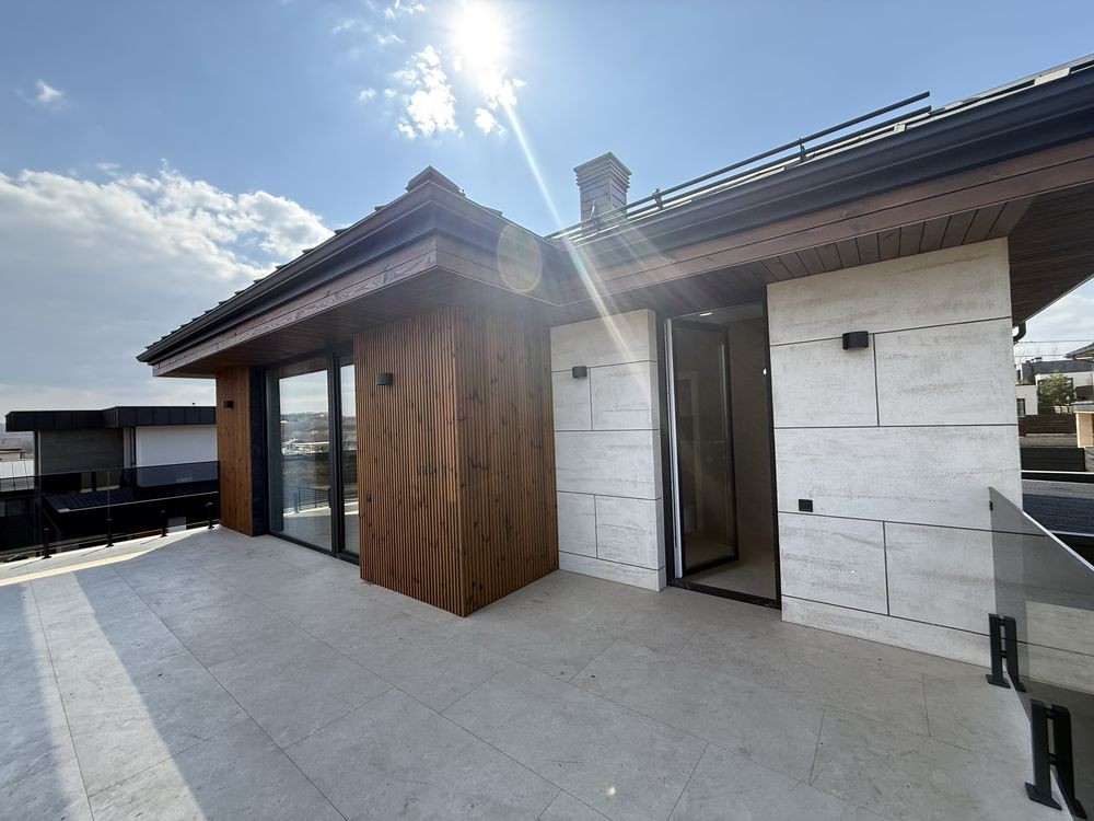 Планування : простора кухня-вітальня , 4 окремих кімнати. 3 санвузли , декілька терас , гардеробна , підсобне приміщення