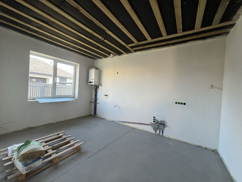 В будинку зроблено початковий ремонт: розведена електрика та сантехніка, тепла підлога по всьому будинку, чистова штукатурка стін та стяжка підлоги, встановлено газовий котел та фільтр на воду