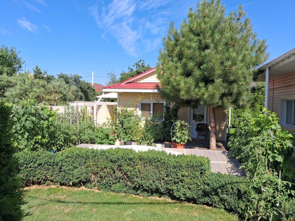На ділянці газон, троянди, виноград, бересклет, та інші декоративні насадження.