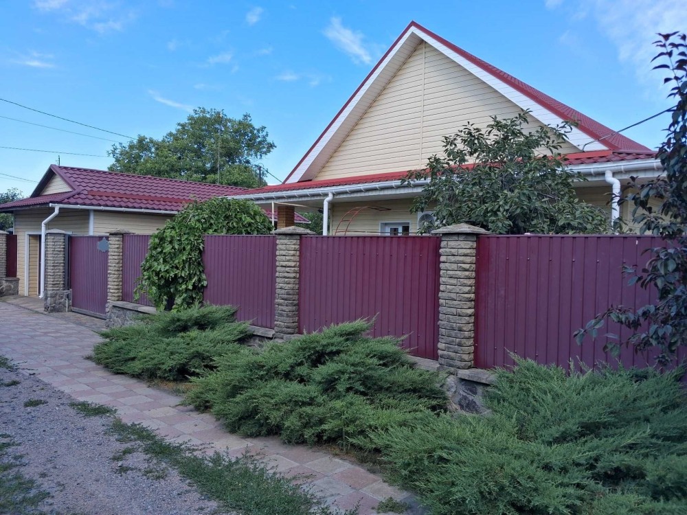 Продам будинок в Крюкові, зуп. Трансформатор(9 маршрут), 108 м2, кухня-студія з меблями та технікою, дві спальні, санвузол з ванною(джакузі), на вході коридор з меблями, та в середині шафою-купе, велика закрита веранда зі склопакетами та бутовим погрібом(бомбосховище). Опалення газове: в кімнатах батареї, в кухні-студії тепла підлога, є стабілізатор напруги та резервне живлення на будинок та всі споруди - генератор на 5 кВт(працює на бензині, метані, пропані), домофон, відеоспостереження.