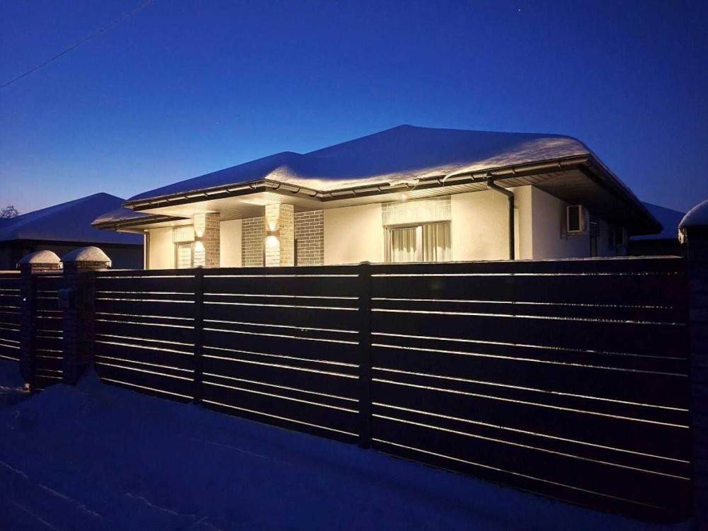 На прибудинковій території виконаний ландшафтний дизайн, парковка і відмостка викладені бруківкою, встановлені автоматичні ворота.