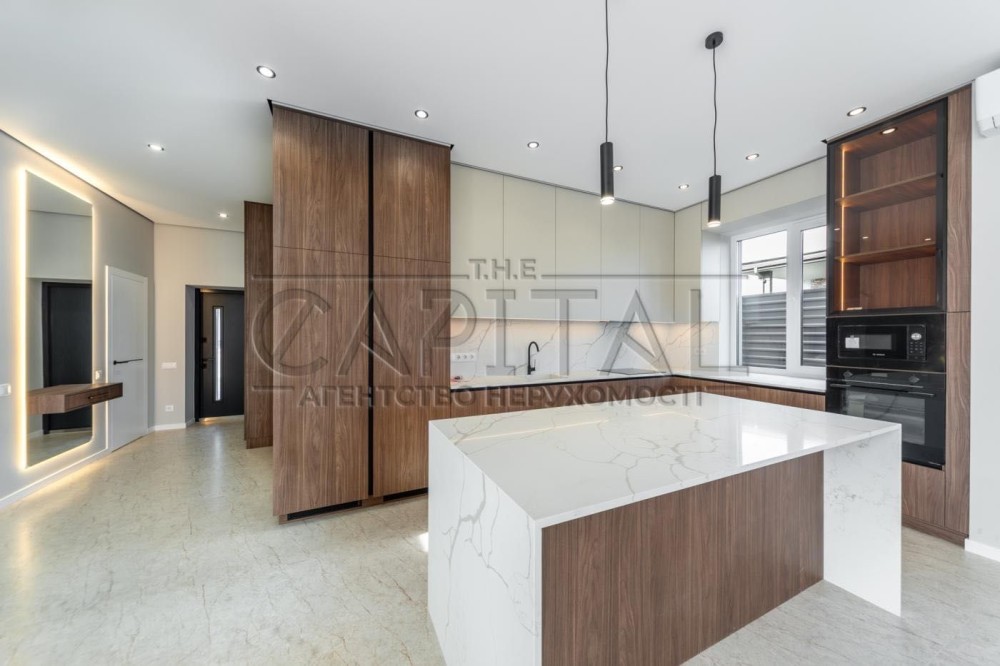 Вас вітає затишок та комфорт заміського життя — чудовий будинок площею 195 м² із ремонтом, каміном та водяним опаленням, розташований у закритому котеджному містечку в селі Ходосівка, всього за кілька хвилин від Києва.