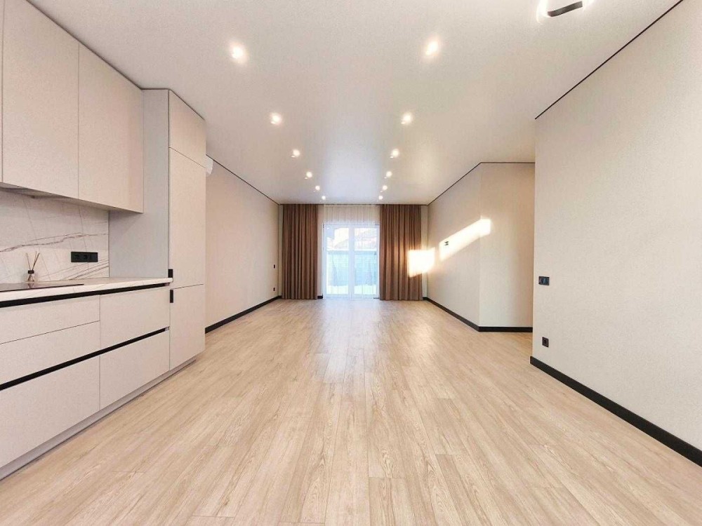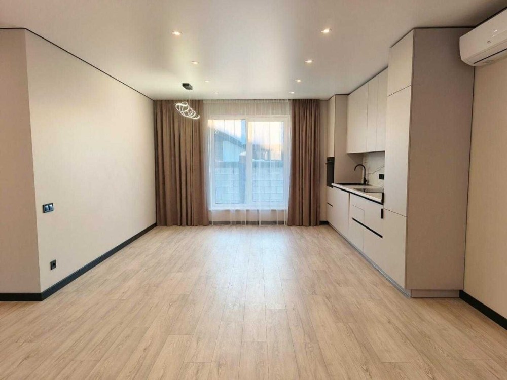 * Дуже гарний та сучаний та світлий ремонт, продумане та зручне планування: 3 світлі та просторі кімнати з великими вікнами, два санвузли та кухня студія.