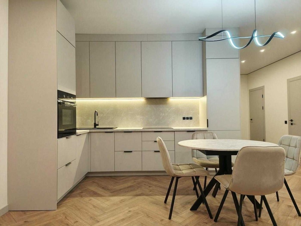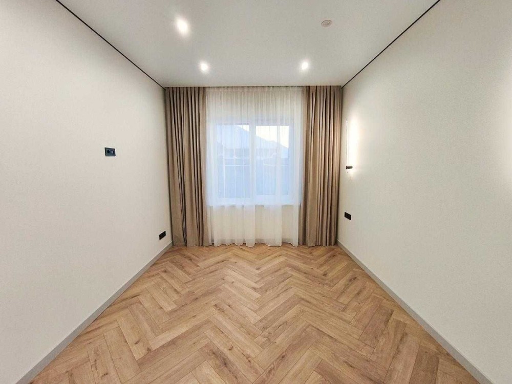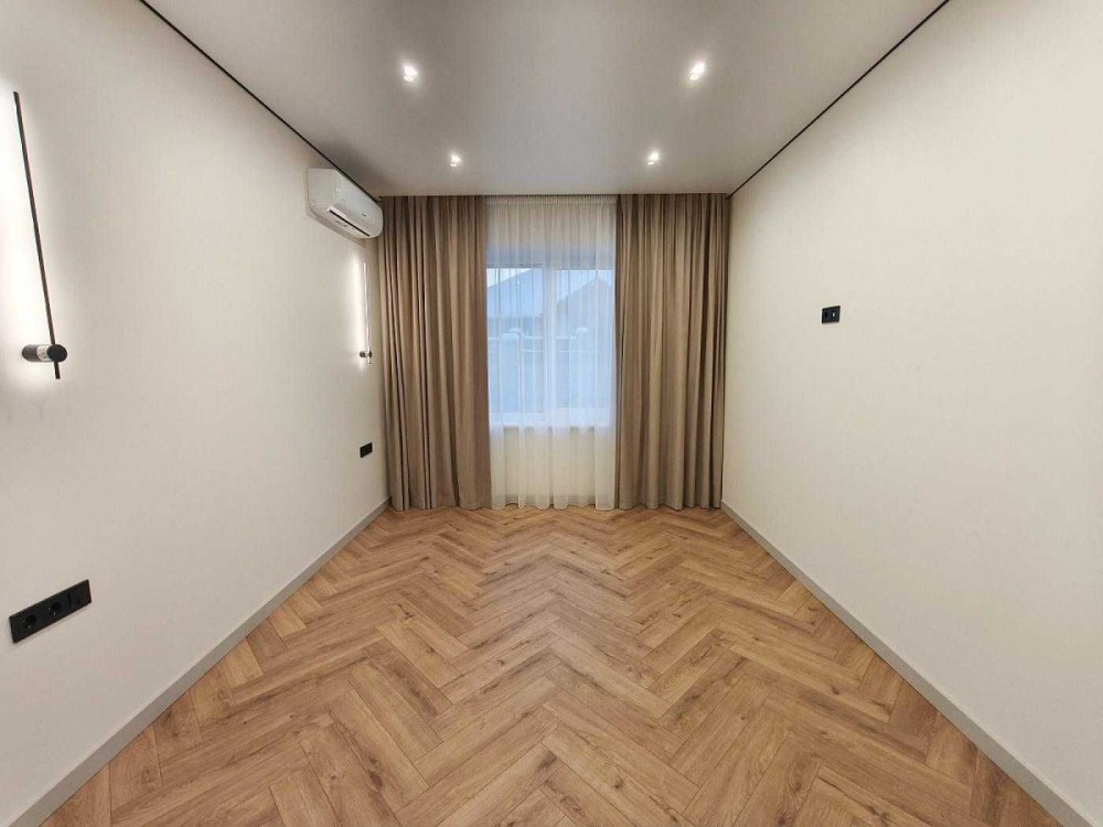 Всередині зроблений гарний і якісний ремонт в світлих тонах. Встановлена кухня з вбудованою технікою - ПММ, холодильник, варильна поверхня, духова шафа, витяжка. Також в кухні-студії є великий розкладний диван. Санвузли укомплектовані меблями і сантехнікою. Встановлені дизайнерські LED-світильники. По всьому будинку змонтована система теплої підлоги. Також ще є бойлер, пральна машинка, кондиціонери, електричний котел. Є можливість підключити газ.