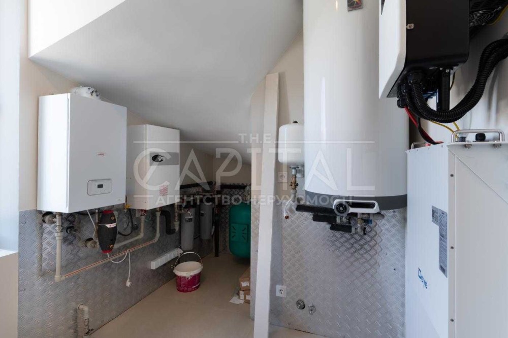 У будинку: 5 спалень, простора кухня-вітальня з каміном, гардеробні та кілька санвузлів. Інтер’єр виконаний з якісних матеріалів у теплих тонах, багато декоративного дерева. Будинок повністю укомплектований меблями та технікою. Кухня з островом із натурального каменю, фасади преміум-класу, встановлена техніка Siemens. Ділянка 15 соток з ландшафтним дизайном: газон, автополив, кам’яні доріжки, зона барбекю. Є навіс на 2 автомобілі та басейн.