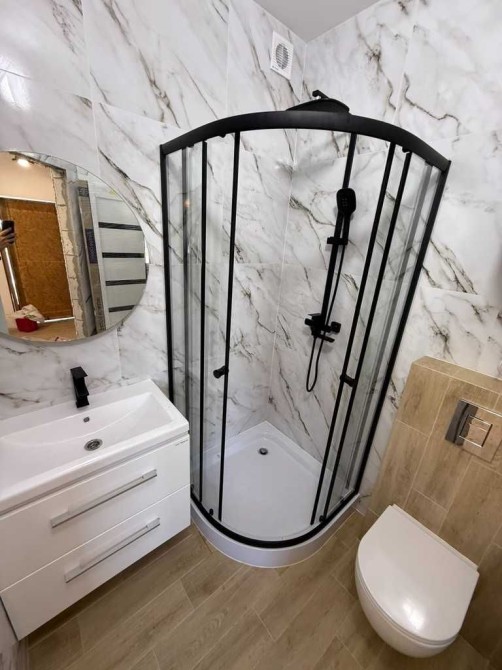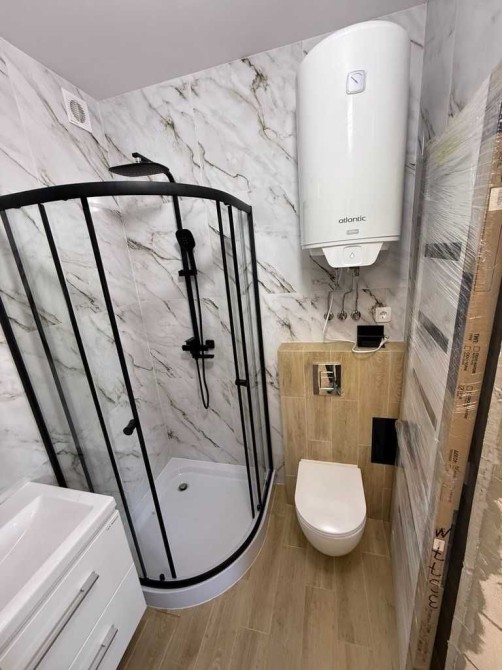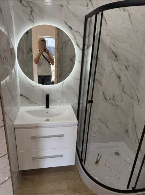 - В ванній зеркало з підігрівом і підсвіткою (щоб не запотівало), душовий бокс і тропічний душ, підвісний унітаз і вмивальник (для зручного прибирання), тепла підлога з окремим терморегулятором, бойлер на 80л (атлантік - якісний).