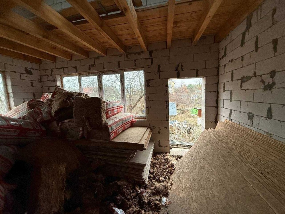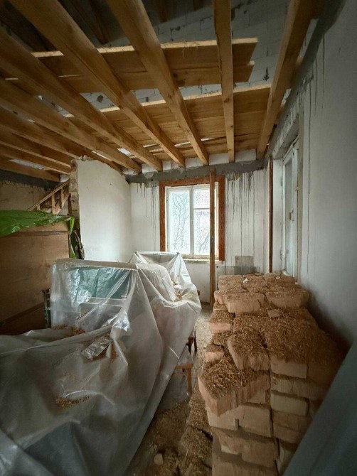 -Будинок – реконструкція старого , на стрічковому фундаменті. Зроблено дах , балки перекриття , вікна . Під будинком є підвал.