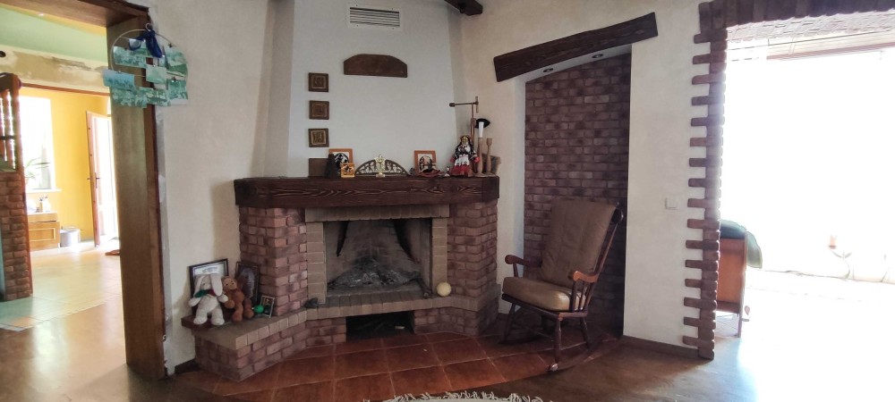 На першому поверсі розташована велика діюча камінна зала з лоджіею, простора кухня столова, меблі на кухні з натурального дерева. Ванна кімната з санвузлом та пральня. Усі меблі на кухні з натурального дерева. Підлога по всьому будику оздоблана якісною паркетною дошкою також всі міжкімнатні двері виготовлені з дуба.