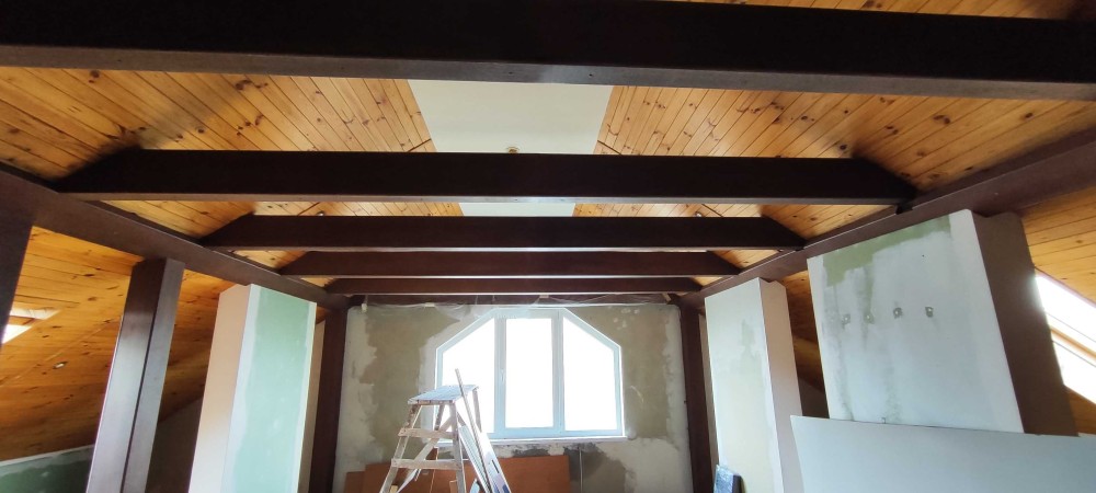 На мансарді розташована простора кімната з мансардними вікнами і санвузол.