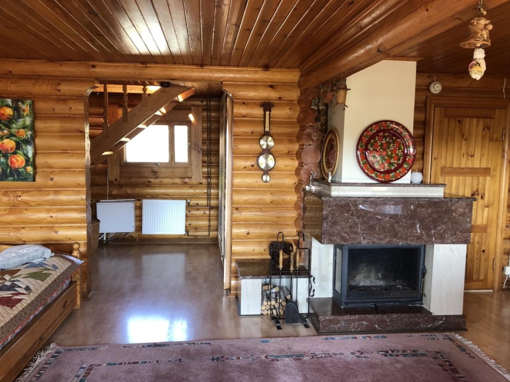 Будинок побудовано за власним проектом із прибалтійської сосни. Вся деревина оброблена Пінотексом для захисту і довговічності. Опалення комбіноване: є електричний та газовий котли.