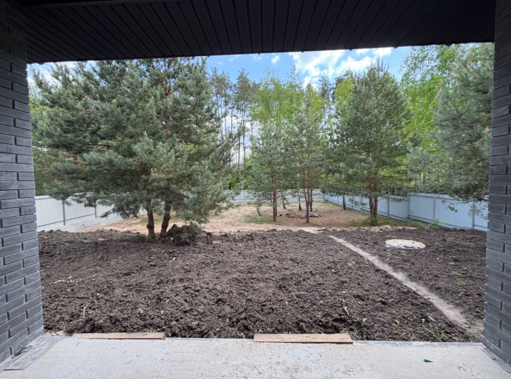 Доволі зручний підїзд до будинку. Ділянка 15 сотих - справжня окраса будинку. Багато дерев, сосни, вихід в ліс . По факту - лише засіяти газон і краса!