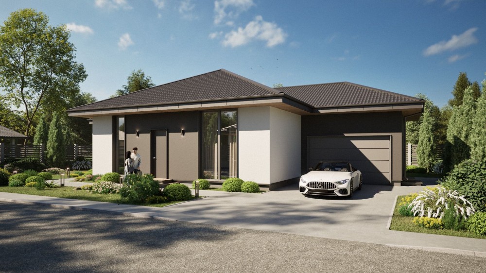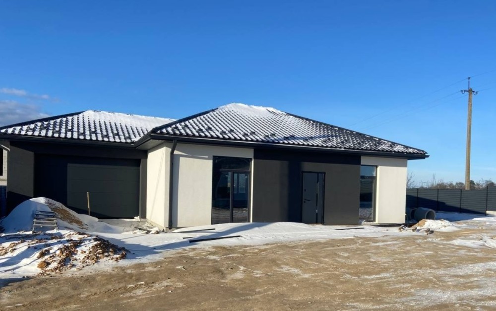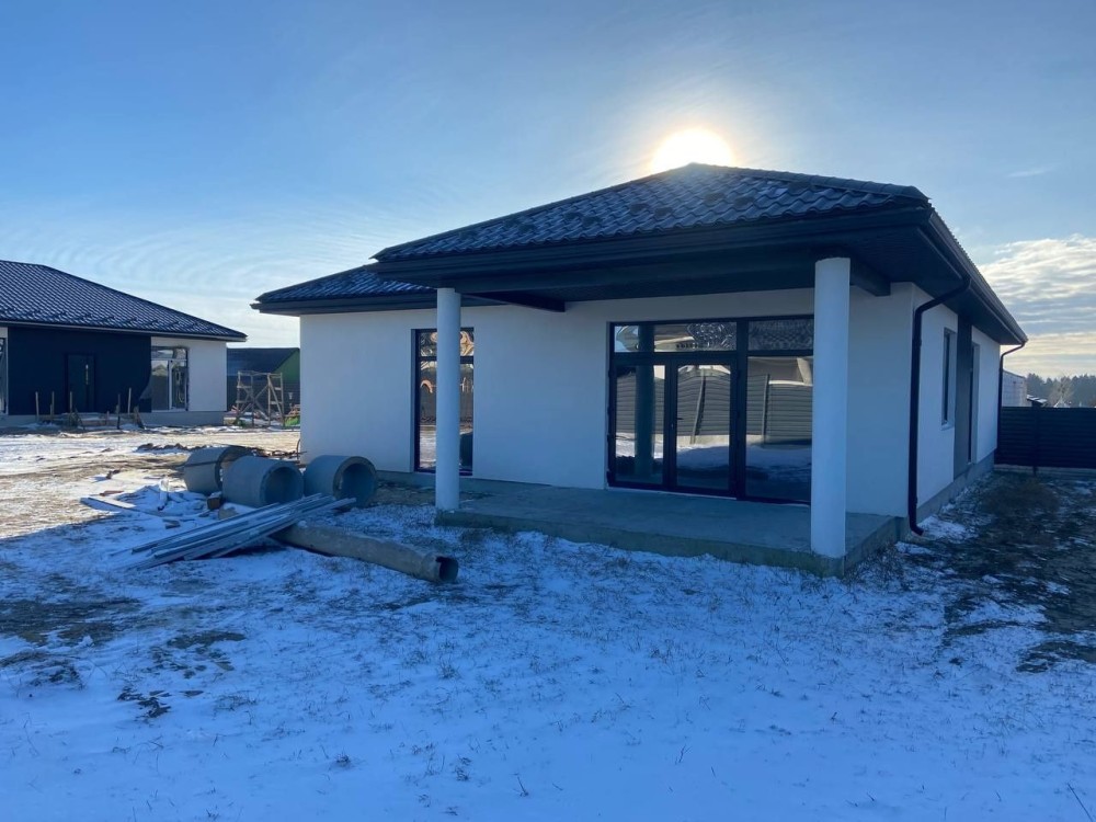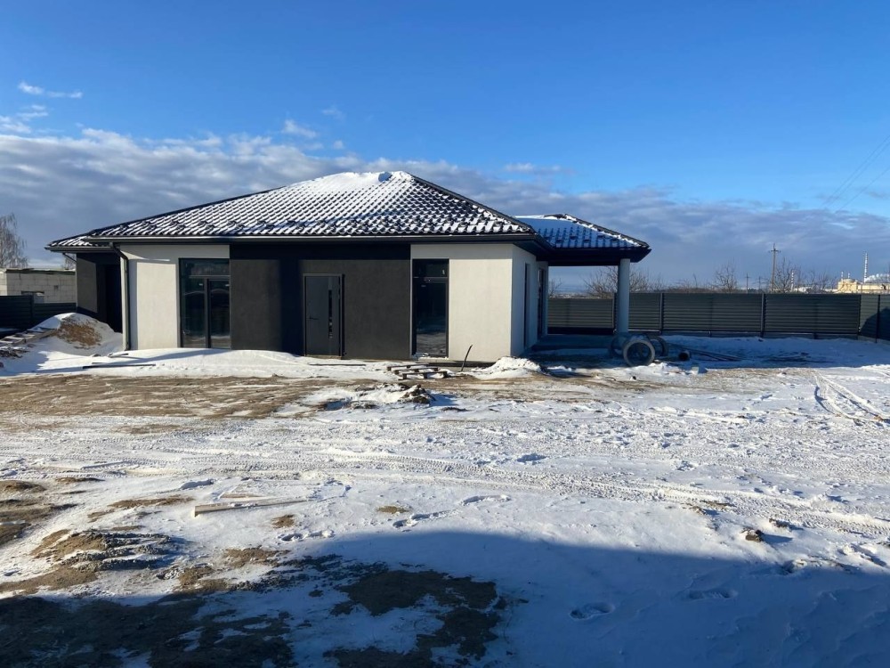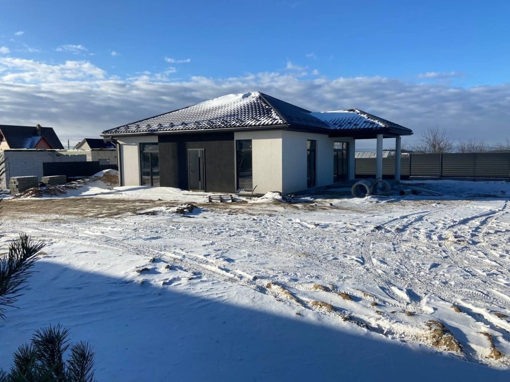 Зручний та сучасний одноповерховий будинок на 100 м² розміщений на 5.5 сотках. Комфортне планування, що включає в себе санвузол, гардероб, три спальні, простору кухню-вітальню з виходом на терасу площею 17 м² та огороджене по периметру подвірʼя. Для вашого автомобіля теплий гараж 5×6 з автоматичними воротами.