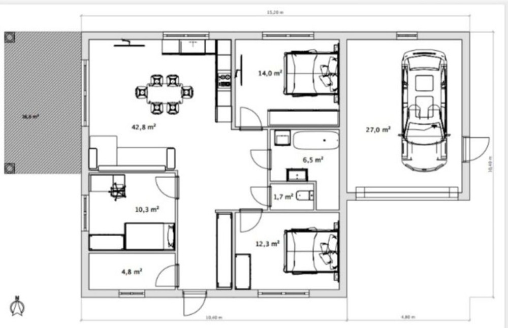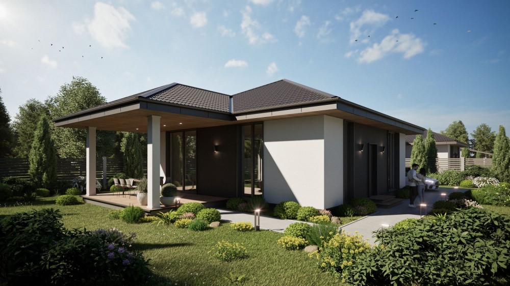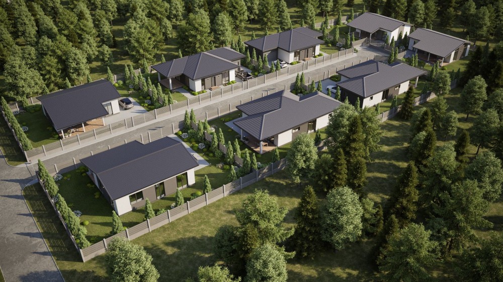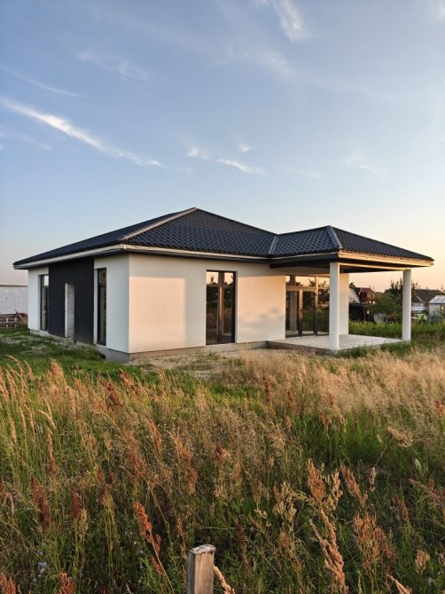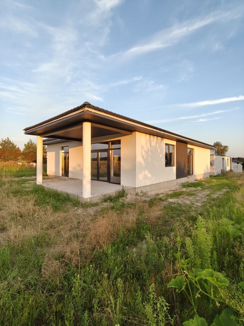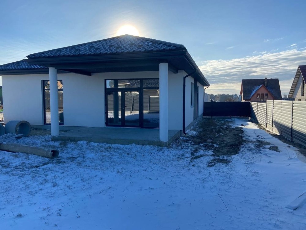 Зручний та сучасний одноповерховий будинок на 100 м² розміщений на 5.5 сотках. Комфортне планування, що включає в себе санвузол, гардероб, три спальні, простору кухню-вітальню з виходом на терасу площею 17 м² та огороджене по периметру подвірʼя. Для вашого автомобіля теплий гараж 5×6 з автоматичними воротами.