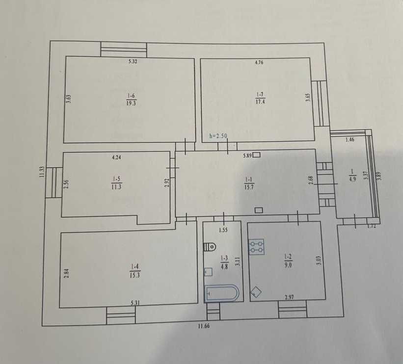 Цегляний будинок, центральна частина Полтави, 98 м², 4 кімнати