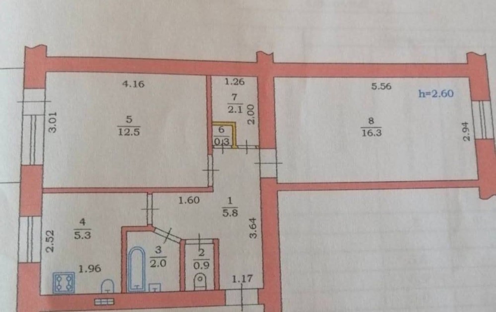 • Площа кухні 6 м2