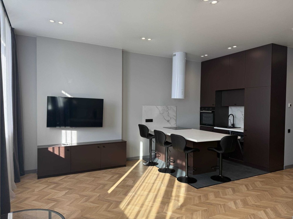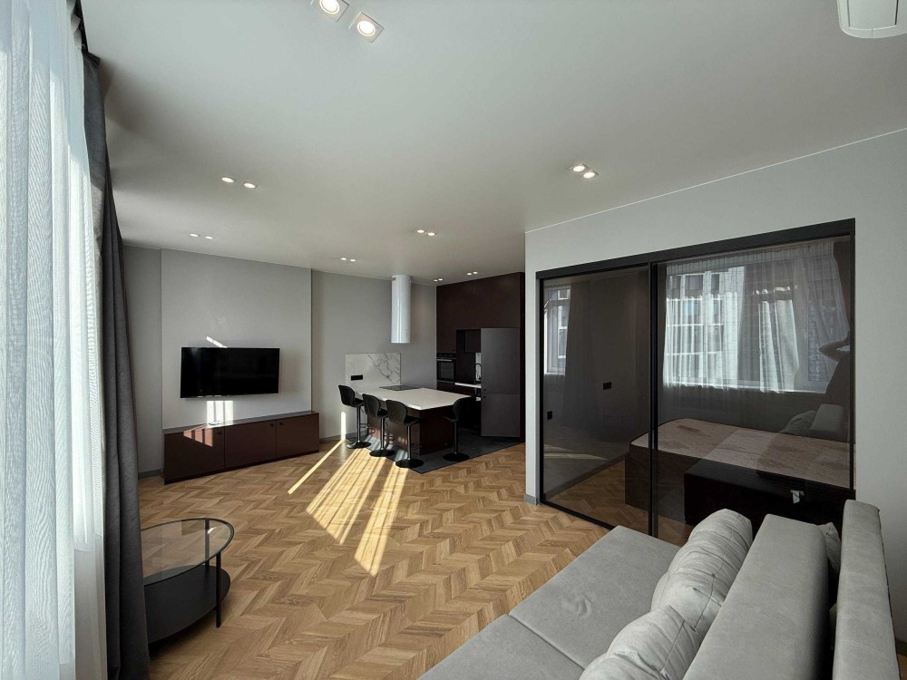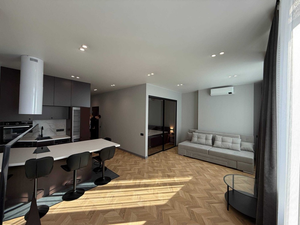 Світла, 1-кімнатна 53 кв.м, простора кухня-студіо, спальня, велика гардеробна кімната, санвузол суміжний, душова кабіна, пральна машина З СУШКОЮ, фільтри на воду, 2 кондиціонери, посудомийна машина, бойлер 80 Літрів, тепла підлога
