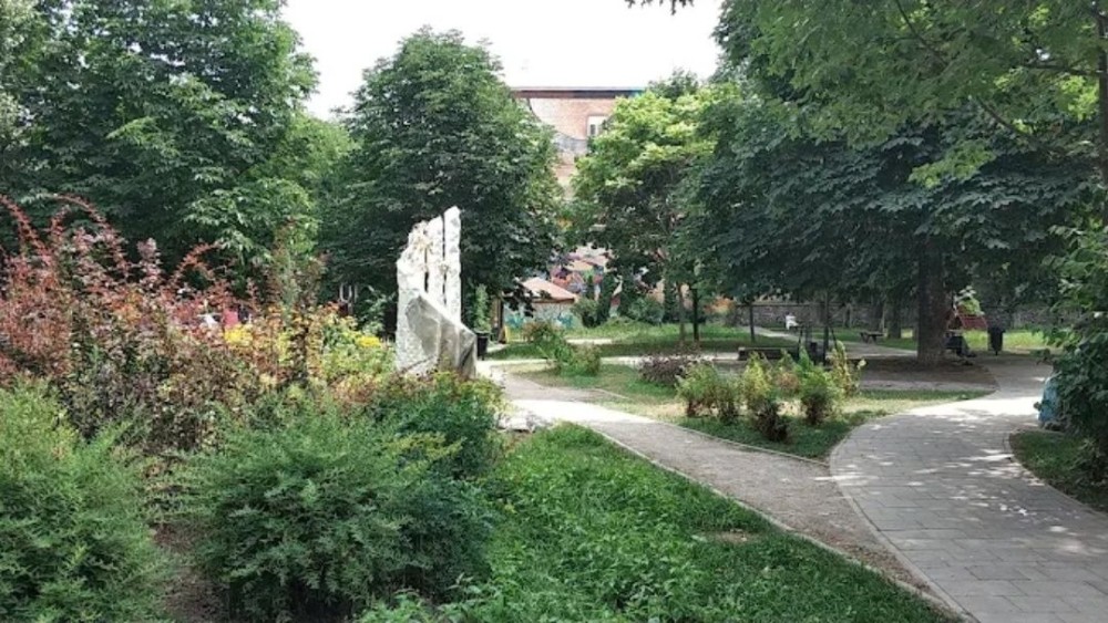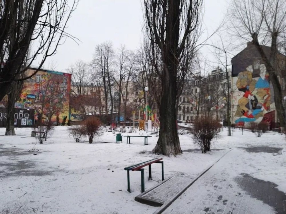 Свій власний двір, заїзд через шлагбаум, у дворі Сквер київських інтелігентів.