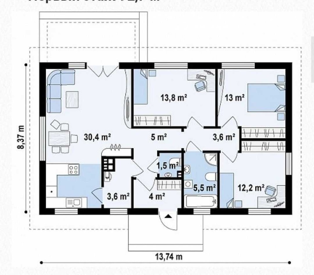 • Загальна площа 93 м2