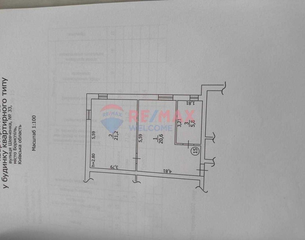 Планування роздільне. Кухня -вітальня 20,6 м2 , кімната 21,2 м2, санвузол 5,8 м2.