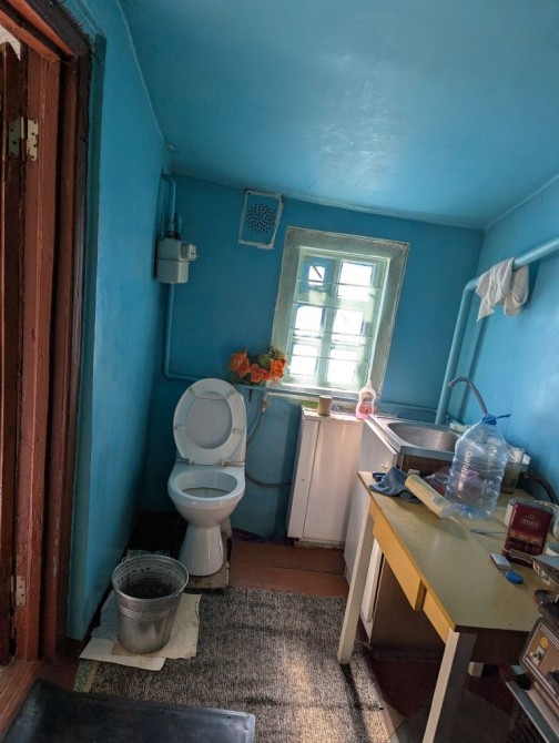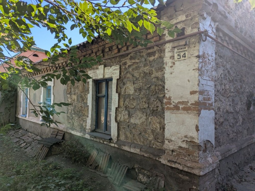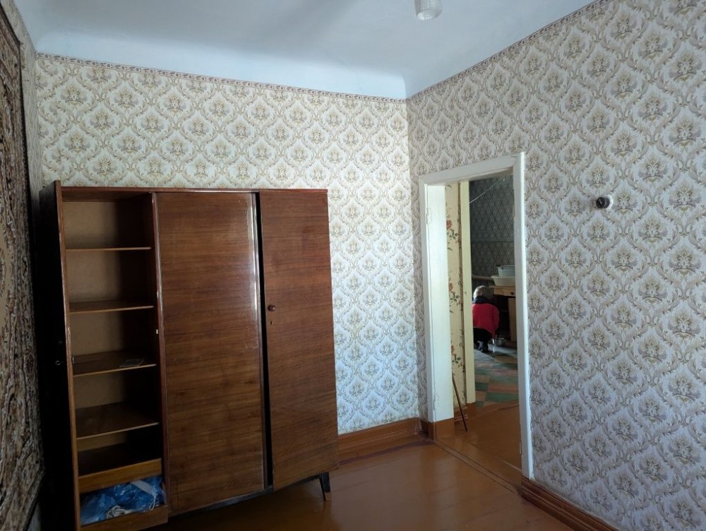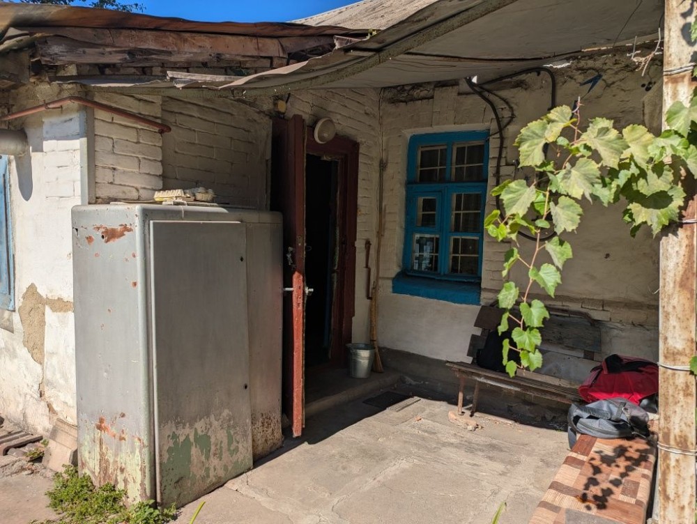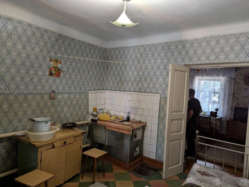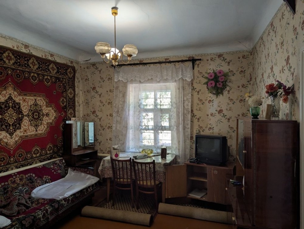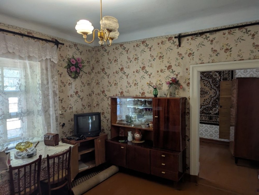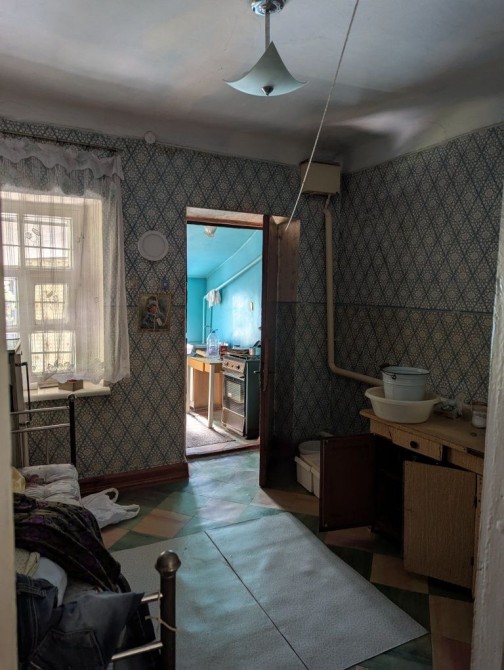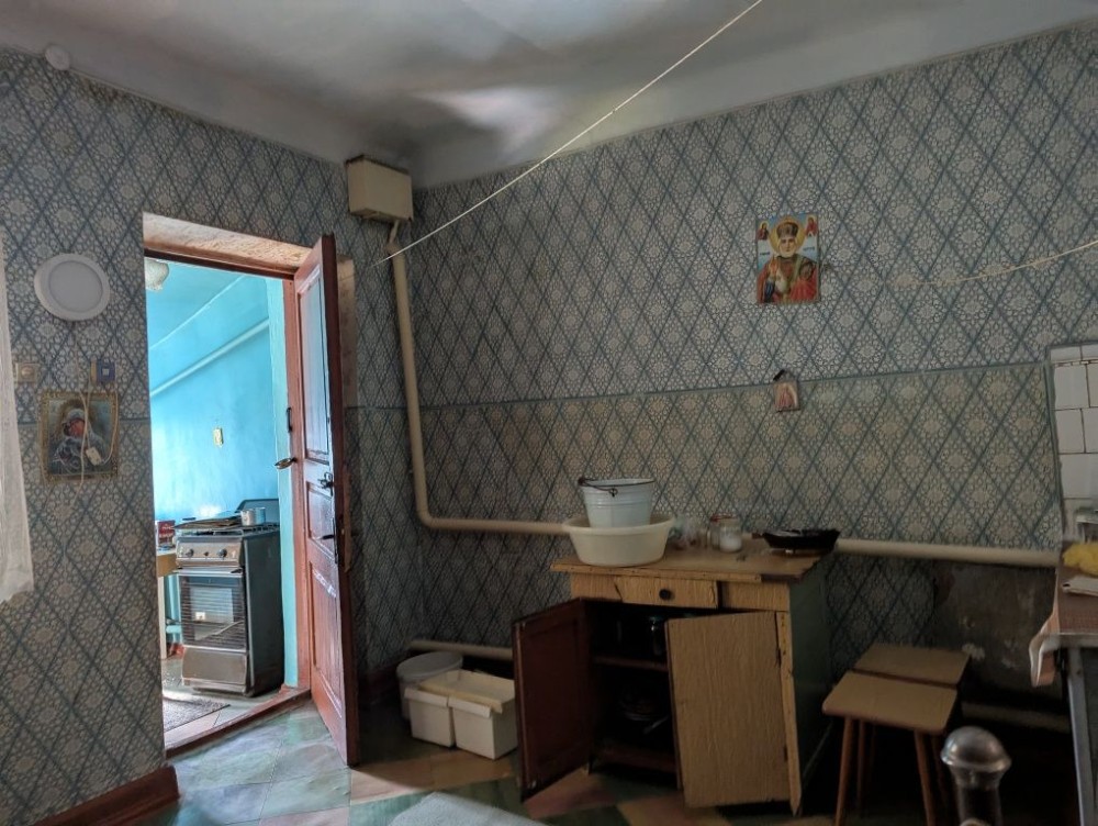 Будинок кам'яний, міцний. Висота сталі - 2.9 м. Знаходиться всередині між 2ма іншими частинами, що належать іншим власникам. Теплий взимку, прохолодний влітку. Стан - на фото (доживала свій вік бабуся). Є газове опалення (інд.котел), холодна вода з каналізаційною ямою. Туалет і газова плитка / котел - в прибудові. Є 3 кімнати (2 великі прохідні і 1 окрема). Житлова площа - близько 35 м2.