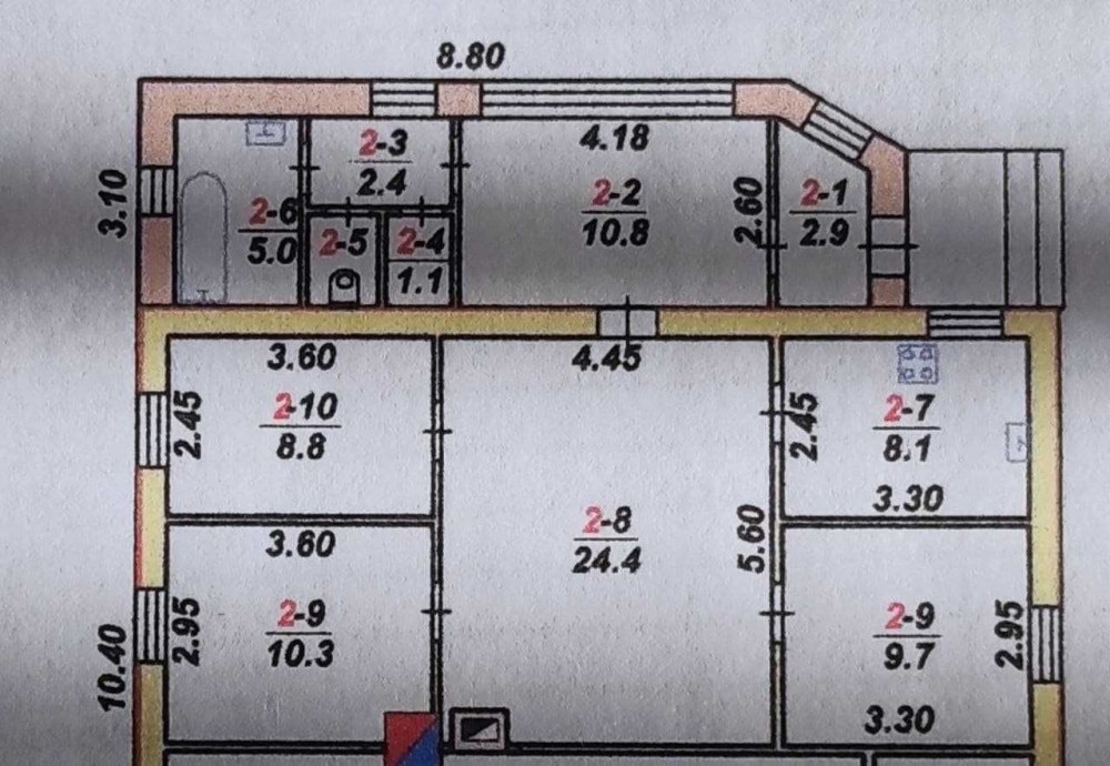 Продам частину будинку в центрі міста з приватизованою земельною ділянкою. Загальна площа будинку – 84,6 м2, житлова площа – 53,2 м2.