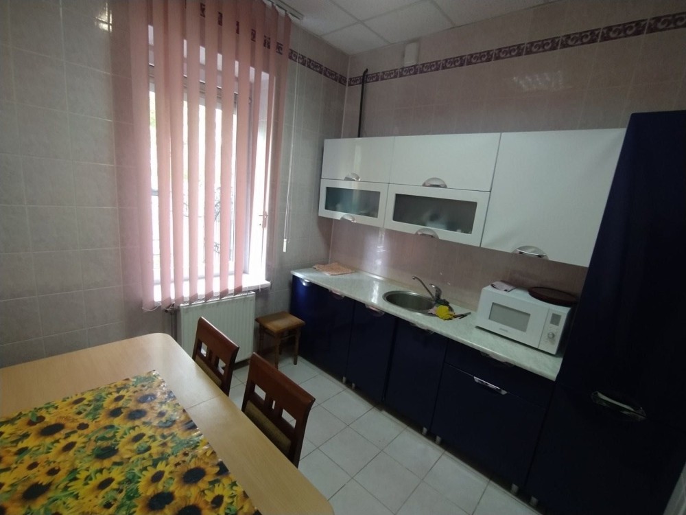 У центрі міста, не біля дороги, у дворі продається частина житлового будинку із приватизованою земельною ділянкою. Одноповерховий. Загальна площа будинку 74,6 м2, три житлові кімнати 16,5 м2, 16,0 м2 та 16,8 м2; кухня 7,4 м2. Санвузол - місце під душову кабіну з підведенням води та водовідведенням, мийка, унітаз. Загальна площа санвузла 3,0 м2.
