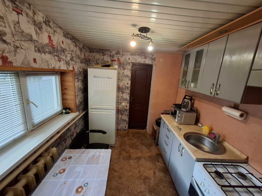 Загальна площа 35м2, велика кухня, дуже просторий санвузол , кімната 14 м2, металопластикові вікна, індивідуальне опалення, гаряча вода від колонки, в будинку всі зручності. Центральне водопостачання, центральна каналізація. Великий погреб.