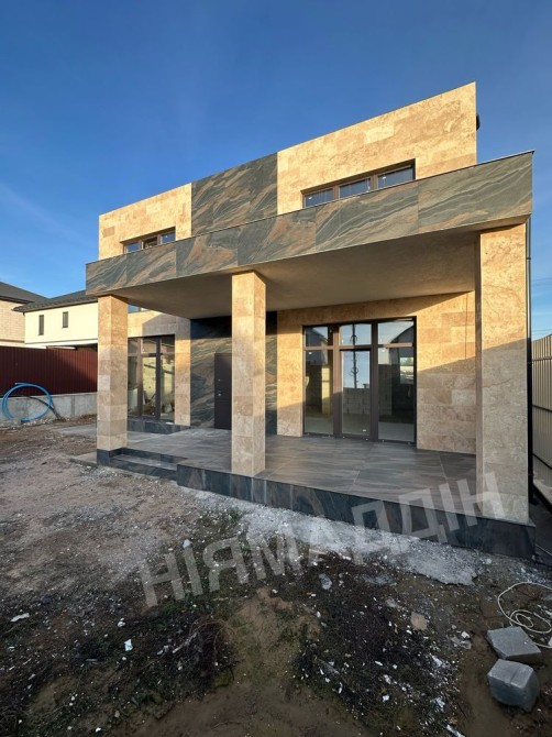 Фасад комбінований: травертин+декоративна штукатурка баранець.