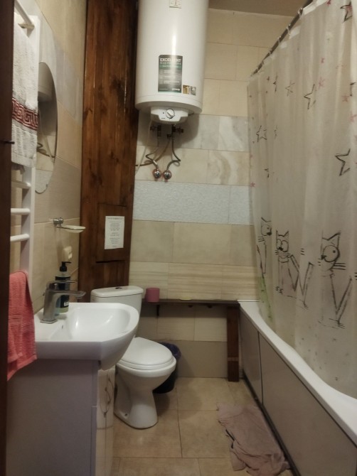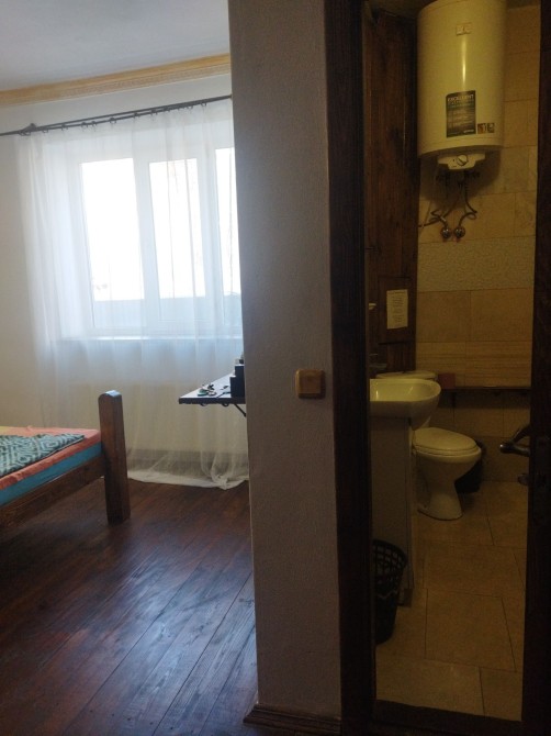 У кімнаті є санвузол з ванною та рукомийником. Є бойлер. Також пральна машина для загального користування.