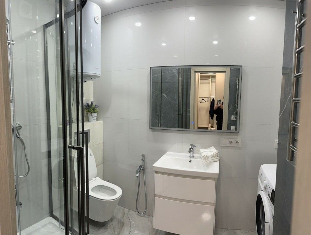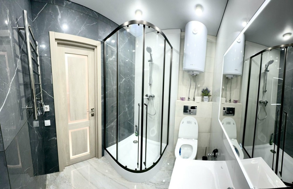 • Сучасний санвузол з якісними брендами від плитки до сантехніки.