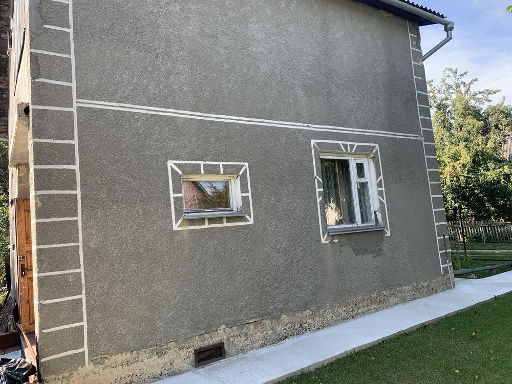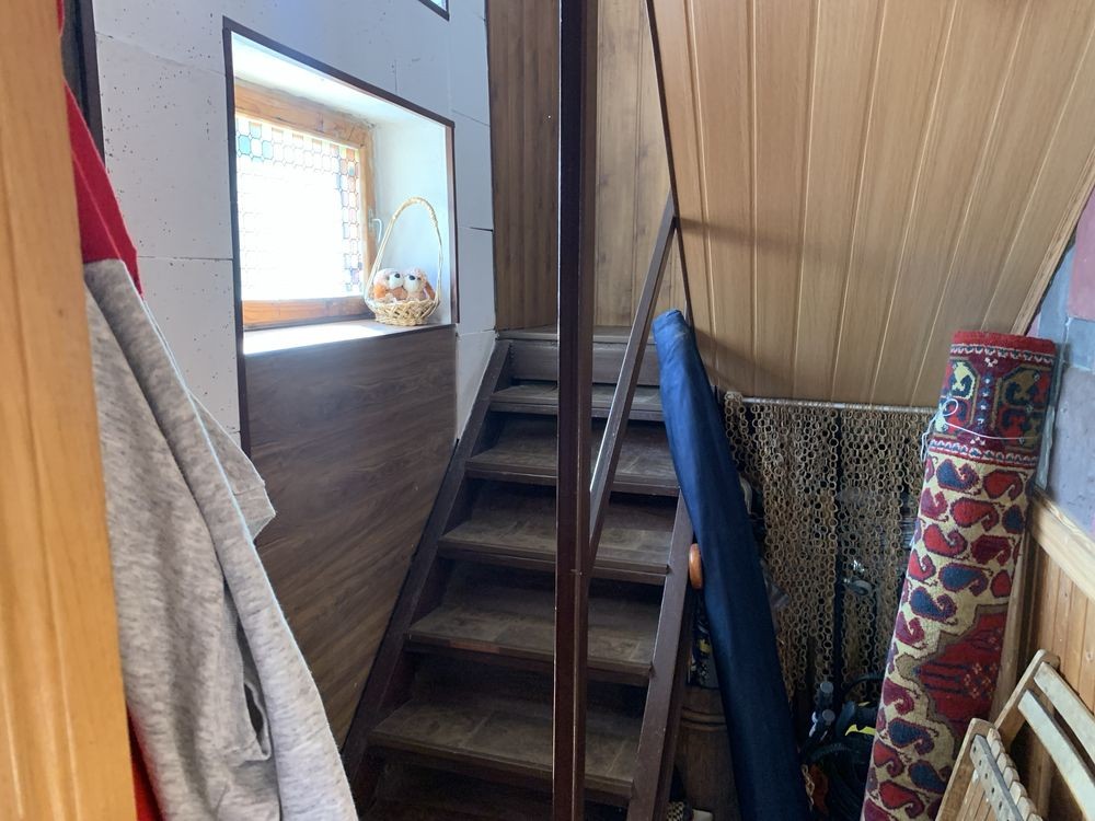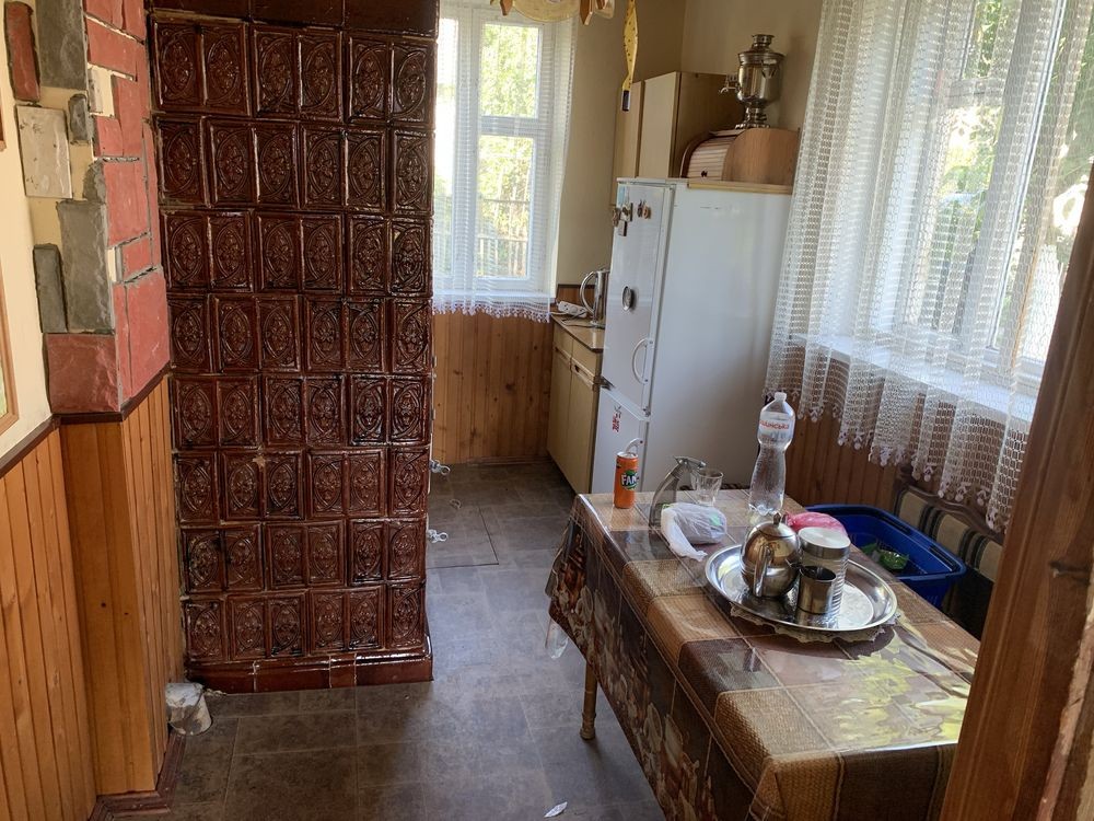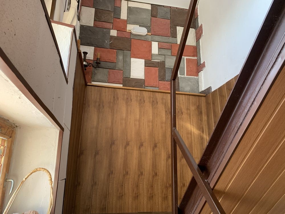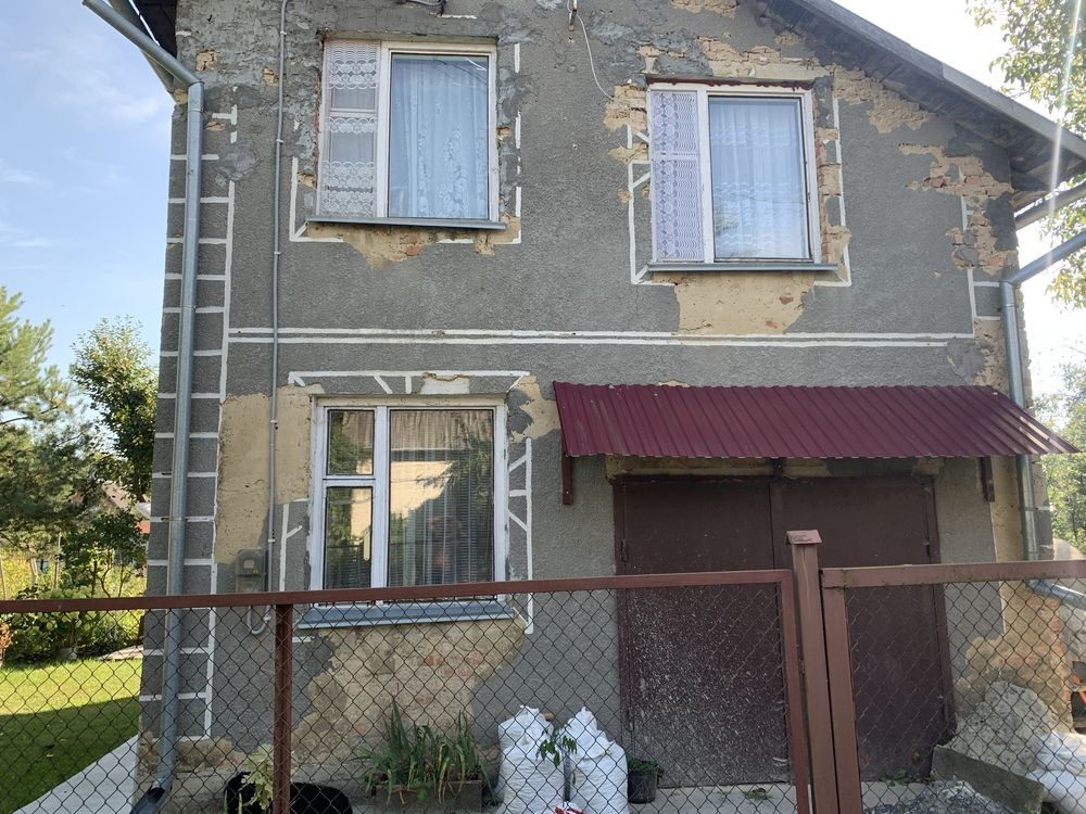 Будинок, 2 поверхи: кухня, кладовка, гараж на 1-му поверсі, сходова і 2 кімнати на 2-му поверсі. Є великий підвал, літній душ, туалет.
