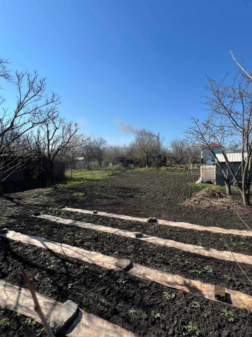 Участок 5 соток , рівний , правильної форми ,доглянутий .Розумно розташовані дерева та насаджання - є місце для творчості .Участок перекопаний ,готовий до сезону