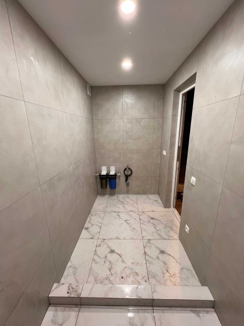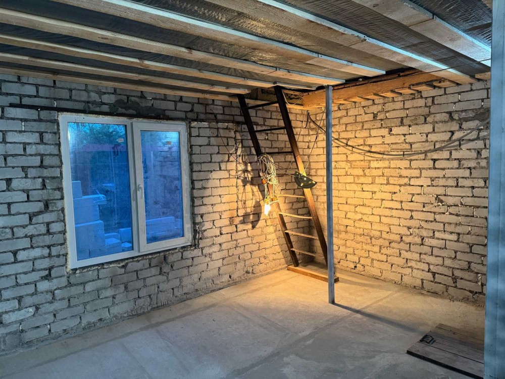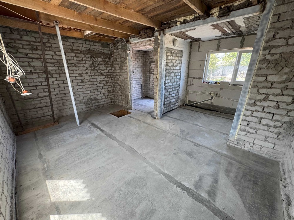 Внутри дома требуются отделочные работы. Из того что было сделано - заменены все окна/дверь, сделана стяжка пола, сделана сантехника, разведена электрика и шумоизолировано/утеплено межэтажное перекрытие. Также сделана новая крыша и по кругу усилен фундамент дома. Есть скважина (в подвале), и интернет.