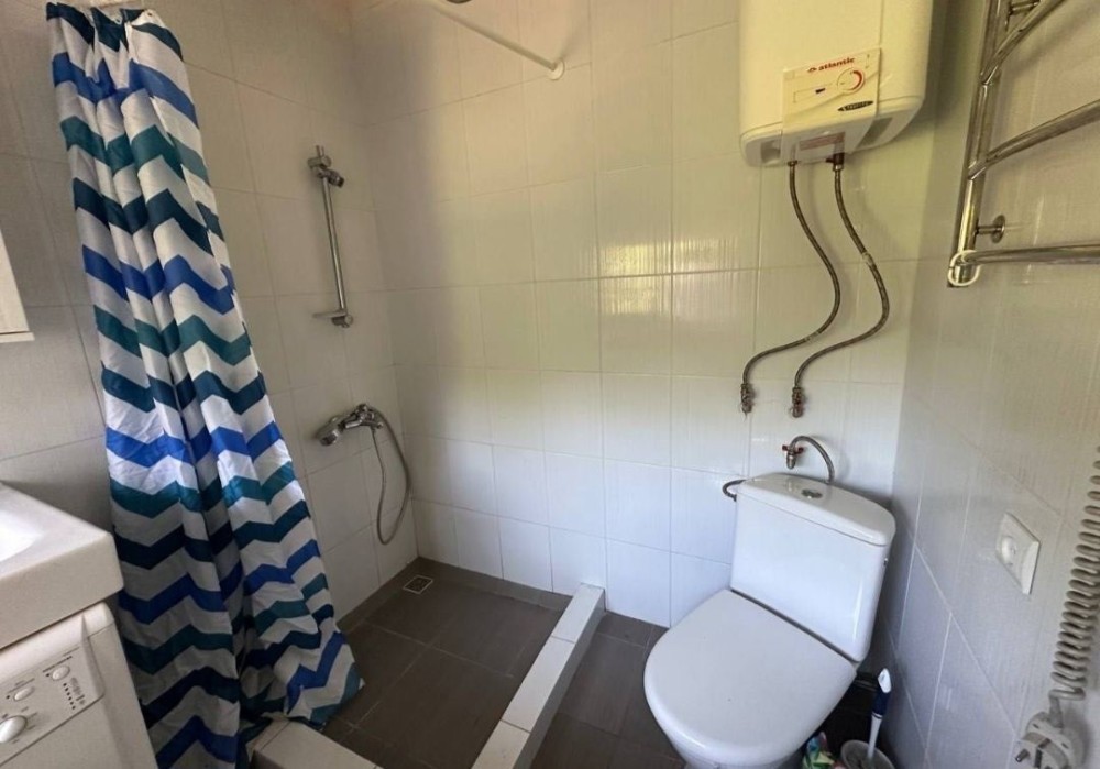 Просторий санвузол з водонагрівачем.