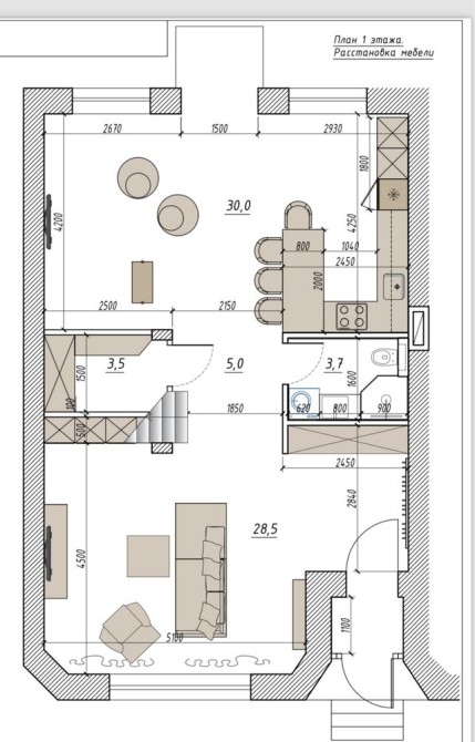Є детальний проект зі всіма розшаруваннями - електрика, сантехніка, викладка плитки, розстановка меблів (навіть декілька варіантів).