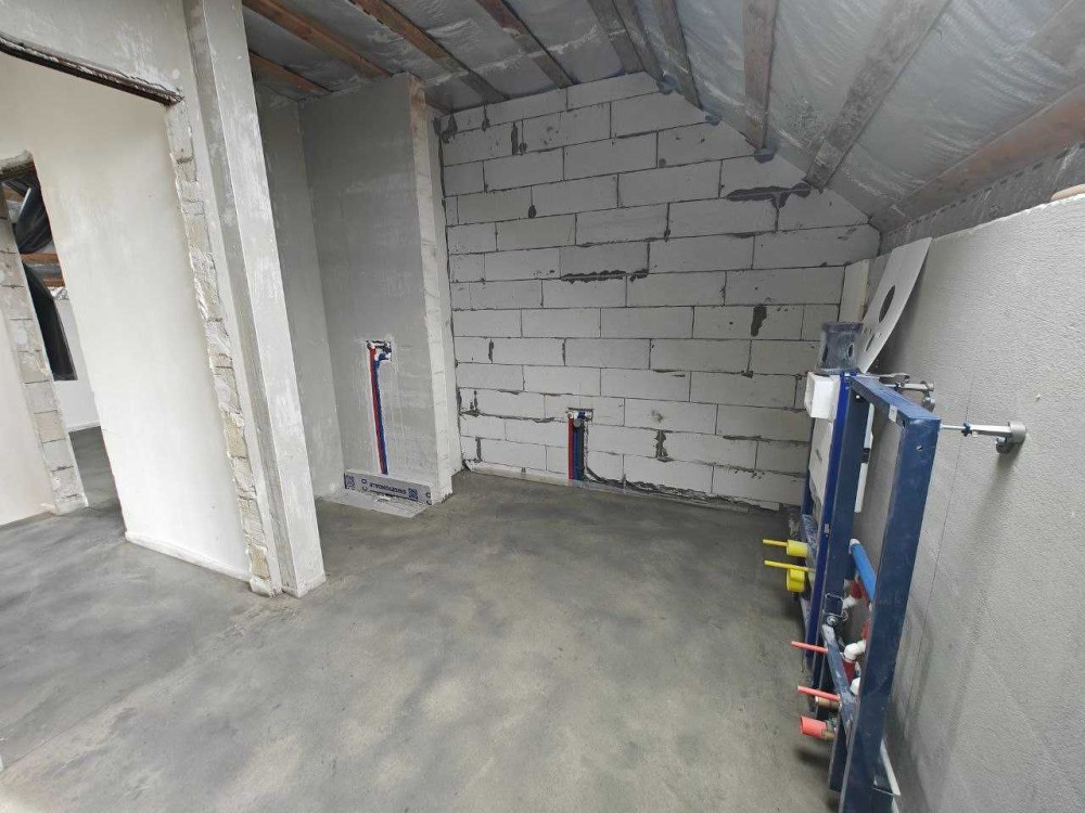 Прокладено каналізаційні стояки та відводи стічних вод, зроблено підводи до сантехнічного обладнання, інсталяція Grohe в обох санвузлах.