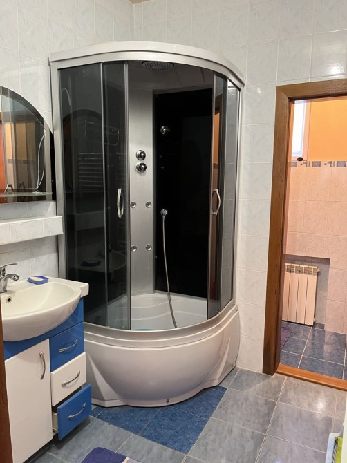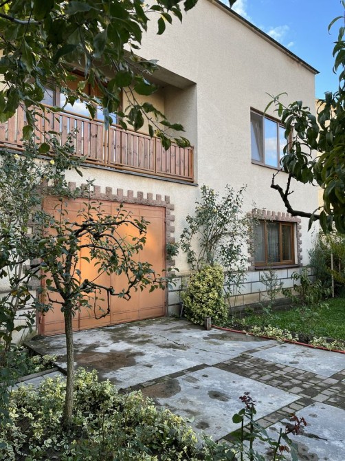 Гарний, добротний двоповерховий цегляний будинок, з гаражем та прибудинковою територією. Хороший ремонт. Шість окремих кімнат, дві на першому, чотири на другому поверхах. Два санвузли. Балкон. Тераса. Пластикові склопакети на вікнах. Паркет. Кондиціонер. Водяний підігрів підлоги, під керамічною плиткою. Газовий котел. Міське водопостачання та водовідведення. Електрика 3 фази, двохтарифний лічильник.