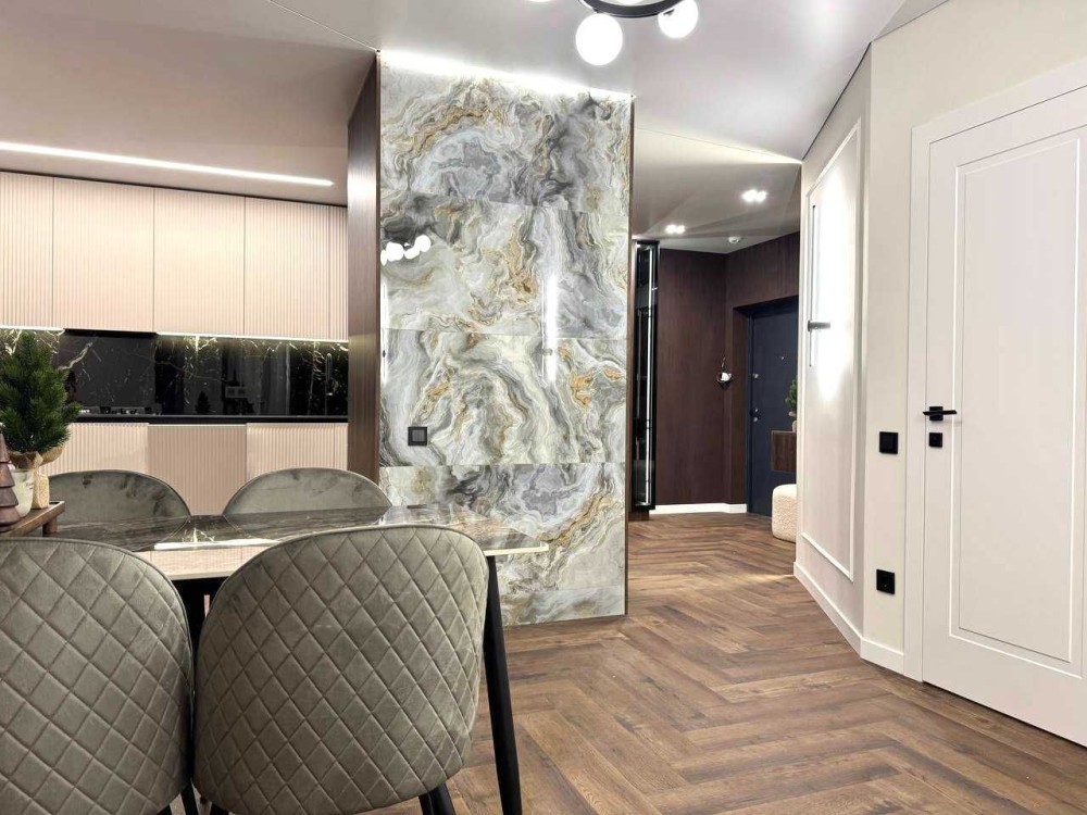 Пропонуємо стильну та комфортну квартиру з сучасним ремонтом у престижному житловому комплексі, повністю укоплектовану. Загальна площа квартири 71.6м2 яка розташована на шостому поверсі.