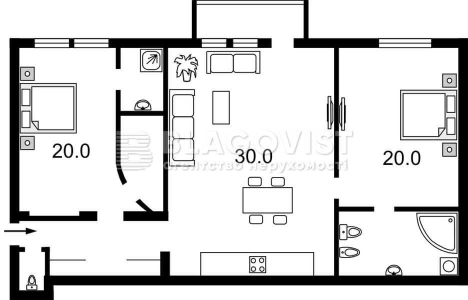• Площадь кухни 30 м2