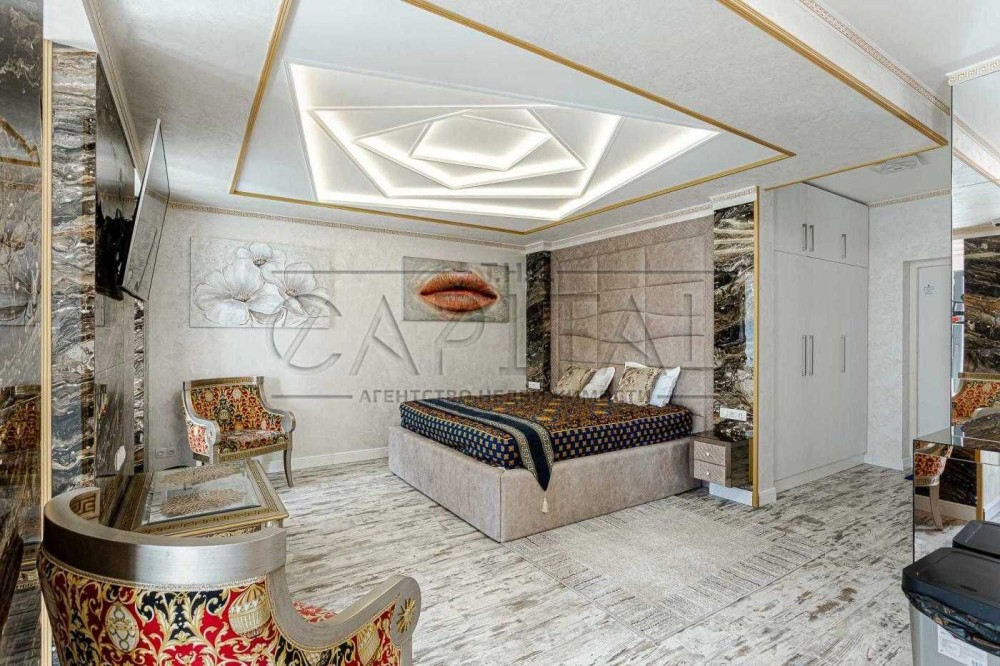 Простора кухня-вітальня, кабінет, тренажерна зона, спальне місце зі зручним ліжком King-size (ортопедичний матрац люкс якості). Дизайнерська стеля та ексклюзивні меблі. Прекрасне зонування простору.