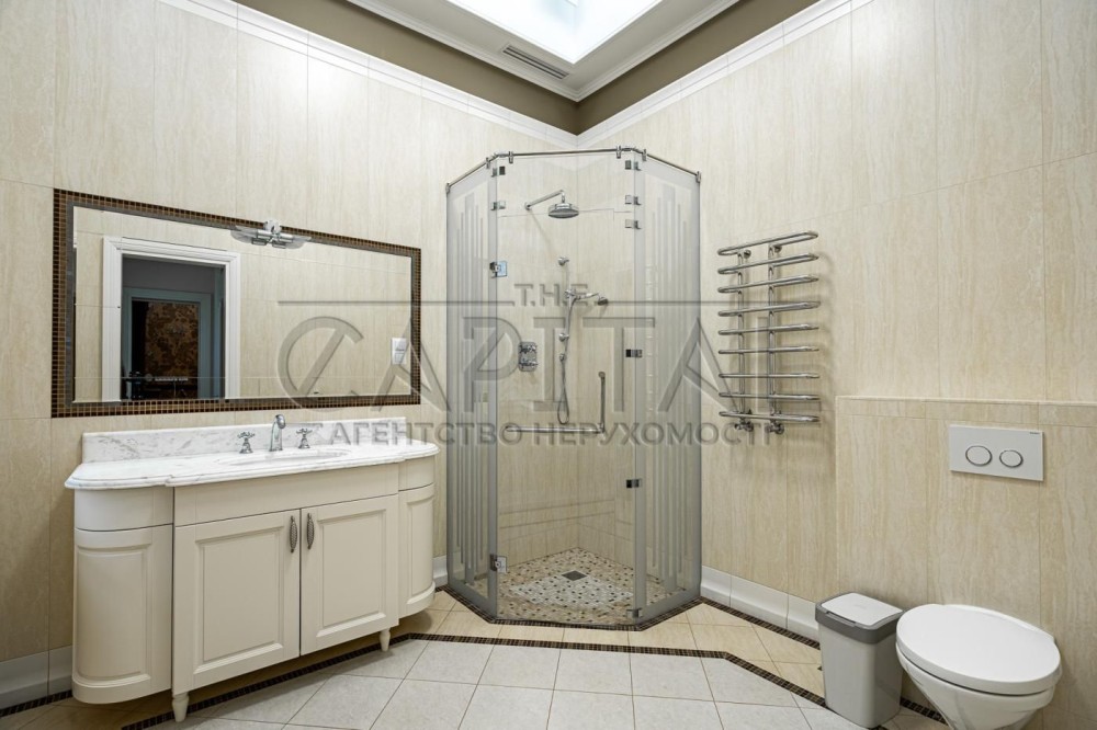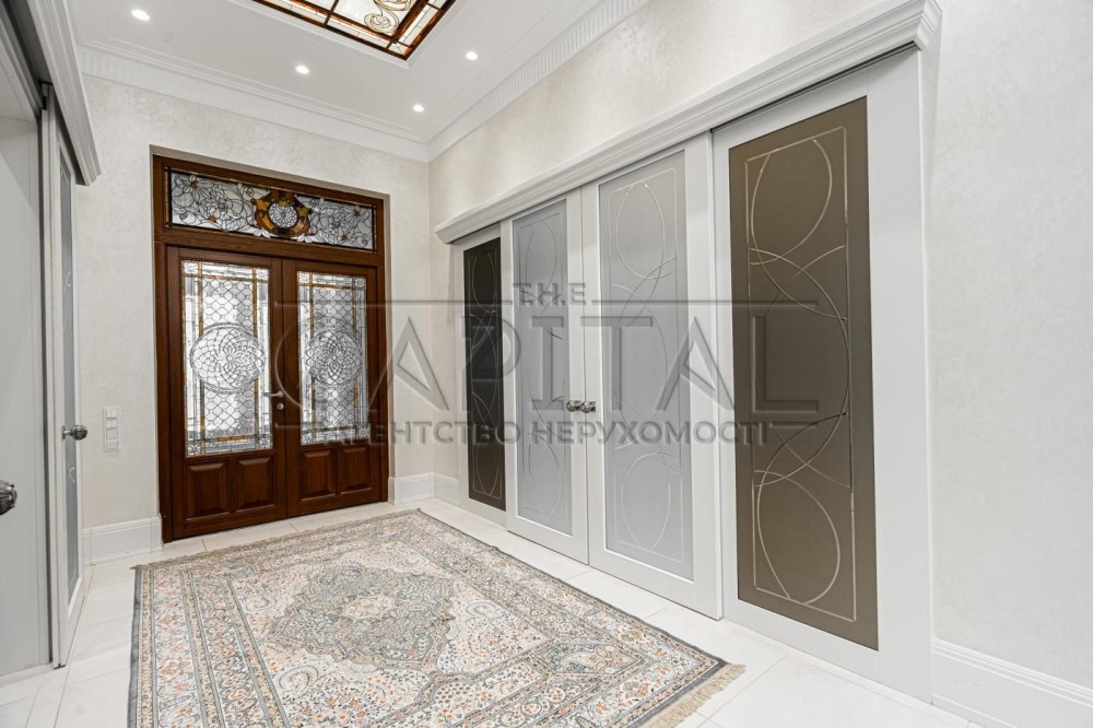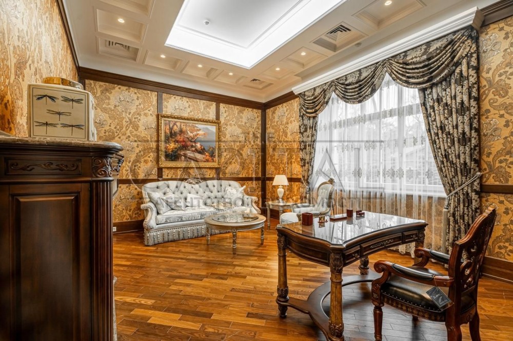Елітний маєток De Luxe у французькому стиліЛокація: Ворзель, Київська область, вул. Соснова 73Площа будинку: 755 м² Ділянка: 0,71 гаАтмосфераЦей унікальний маєток – справжня перлина французької архітектури в оточенні вікових сосен та чистого повітря Ворзеля. Локація поєднує тишу та приватність заміського життя з близькістю до Києва – лише 15 хвилин комфортної поїздки Житомирською трасою.На території – каскад озер із містками, ландшафтний дизайн у європейському стилі, прогулянкові доріжки з натурального каменю та власна зона відпочинку біля води. Архітектура та інтер’єрБудинок виконаний у класичному французькому стилі De Luxe: • 3 поверхи з ліфтом, панорамні вікна, високі стелі. • Авторський дизайн-проєкт, ручний декор, меблі Michael Amini (США). • Мармуровий вхід, художні вітражі, розкішний хол з люстрою-каскадом. • Камінна зала — серце дому, ідеальне місце для родинних вечорів. • Сучасна кухня-столова (Miele, Bosch, Siemens) з мармуровим островом та виходом на терасу. • Кабінет у класичному англійському стилі з каміном і власним санвузлом. • SPA-зона для релаксу. ПлануванняДругий поверх: • Майстер-спальня в стилі французької провінції XX ст., гардеробна, ванна з панорамним видом на сосни. • Дитяча кімната з ручним розписом стін. • Дві додаткові спальні-сьюти з балконами й власними ванними. • Простора тераса з видом на ліс.Третій поверх: • Бібліотека з каміном і кінозалом, санвузол. • Відкрита зона для вечірок або міні-студії / спортзалу – звуконепроникна плита 80 см. Технології та екологічність • Геотермальний тепловий насос із підземними свердловинами. • Сонячні колектори, система «Розумний дім». • Клімат-контроль з очищенням, зволоженням і фільтрацією повітря. • Витрати на утримання мінімальні: газ < 6 м³/рік, електроенергія < $2000/рік. Інфраструктура маєтку • Окрема альтанка з BBQ-зоною, теплим санвузлом і кладовою. • Гараж на 4 автомобілі 2 мотоцикли (опалюваний, з квартирою для охорони). • Сад із катальпами, ялинами, липами та плакучою вербою.#A15032