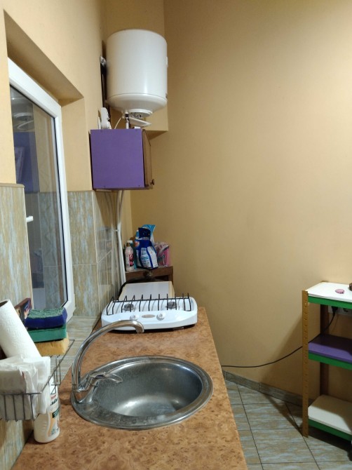 Небольшой уютный домик 38 кв.м (комната 14 м., кухня 10 м, санузел совмещен) со всеми удобствами в доме. Холодильник, кондиционер, бойлер, микроволновка, газовая плита. Все новое.