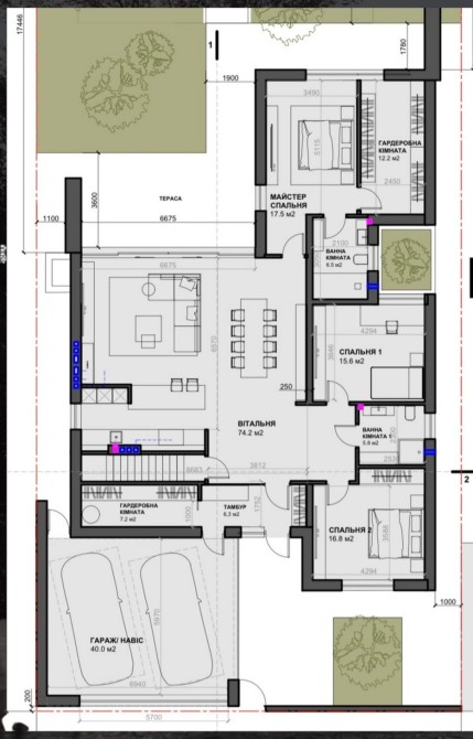 Площадь 1 этаж: 163,3 м2