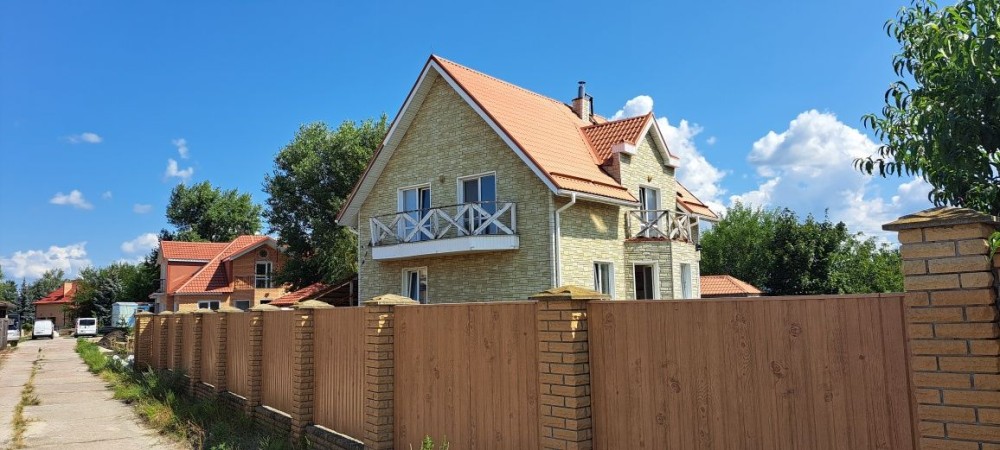 Продам дом в с. Зазимье (Сады"Зазимье" )возле река Десна . ул.Деснянская .Дом 2010г. 2 эт.(кирпичный) под Киевом (17 км от Киева). Площадь 220/140/20 кв.м. Подведены все коммуникации (100% готовности ). Свежий индивидуальный ремонт; метало-пластиковые окна, на полу импортный кафель в коридоре , на 2 -м этаже и комнатах доска на полу, 2 сан.узла в кафеле. Отопление индивидуальное, 2-х контурный котел.Красивый прямоугольный участок 10 сот. В доме есть газ, электричество, скважина ,тихое место.Кооператив охраняемый, рядом река Десна, магазин , остановка маршрутки до Метро Лесная. Александр. Стоимость 150000 у.е. Александр 0979108458,0955532058,0931181103