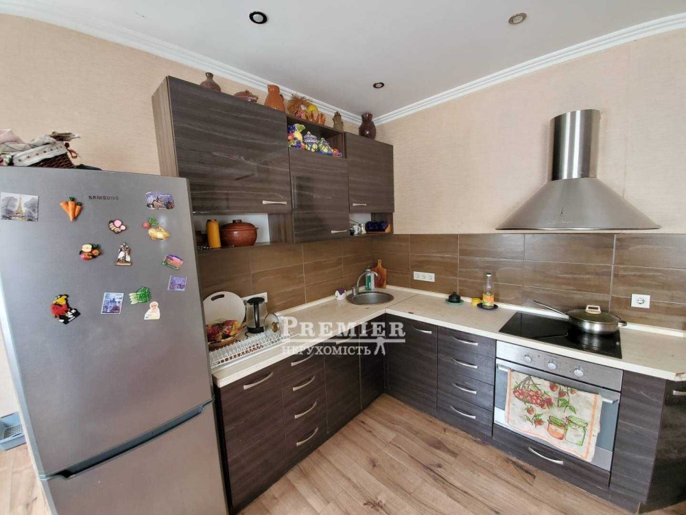 - Установлена современная кухня со встроенной мебелью.