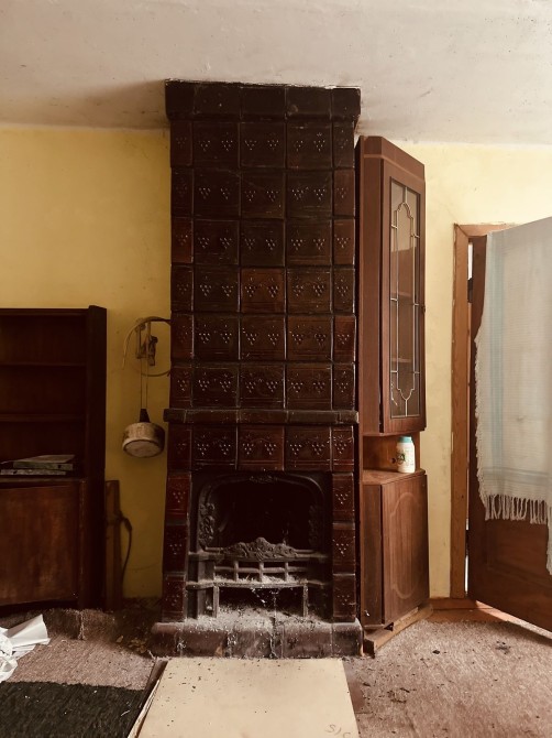 Будинок опалюється каміном, розташованим на 1-му поверсі, і грубою - на мансарді.
