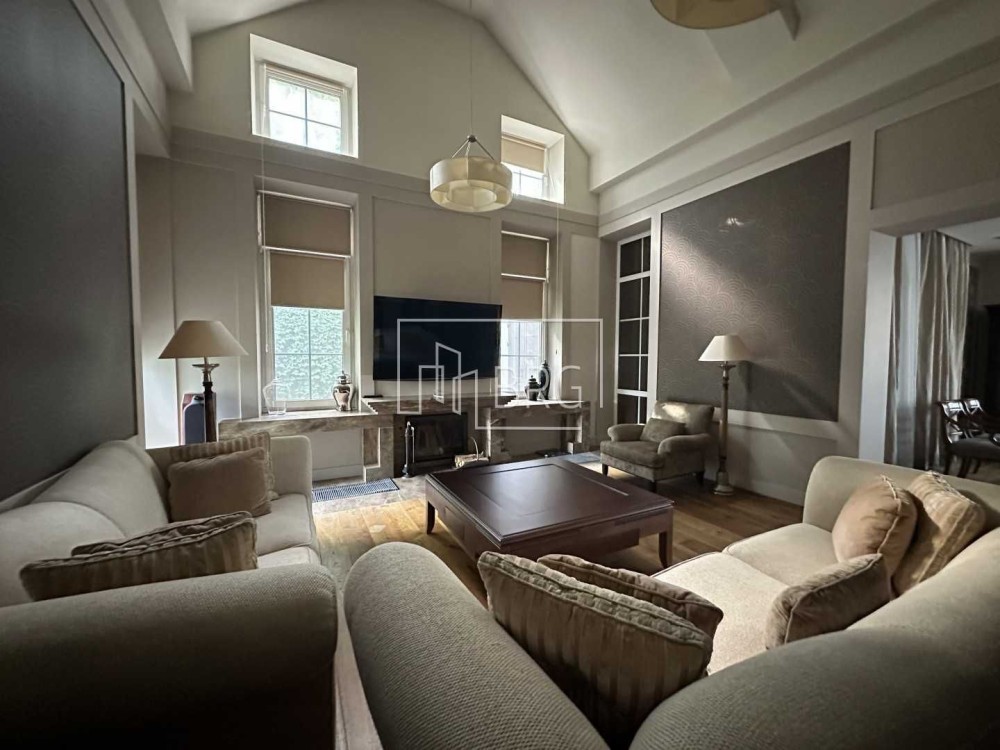 Описание дома: Кухня-столовая, каминная, терраса 160м², 3-4 спальни, 3 санузла, 2 гардеробных, кабинет, спортзал (возможно оборудовать 4-ю спальню с санузлом)