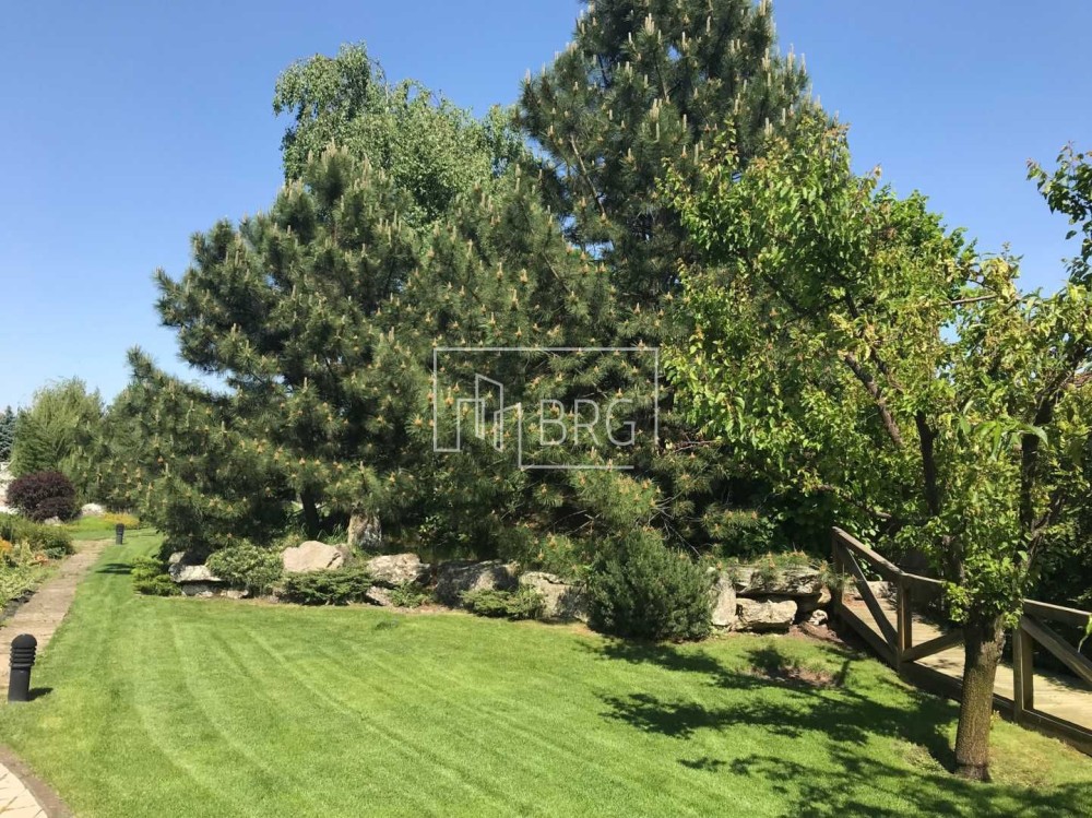 Село Забуччя. 13 км від КП по Житомирській трасі, 19 км від автост.Дачна. 4 км до ЖК Синергія (Ірпінь), 7 км до Бучі. Будинок має 6 кімнат (4 спальні), 2 зали, 4 санвузла, душова. Асфальтований під'Їзд.Будинок під охороною, камери відеоспостереження. Ділянка: Ландшафтний дизайн,басейн, автополив. Відкрита тераса з барбекю. Будинок має мансарду та цокольний поверх. На першому- хол та кухня-студіо, санвузол, туалет та гараж 35 кв.м.. На другому спальня та двоповерховий кабінет, який можно облаштувати під спальню. На третьому кабінет, спальня з санвузлом. Останній поверх- мансарда з санвузлом. На цокольному поверсі велика кімната( під спортзал)де є бігова доріжка, пральна, сауна,душова, техприміщення та 2 кімнати-кладові. На другому поверсі відкрита велика тераса, на третьому балкон. Підлога, керамограніт, плитка, ламінат. Газове опалення, підігрів підлоги на декількох поверхах. камін, сауна. 3 кондіціонера, газовий котел та електроболер. Інтернет оптоволокно.