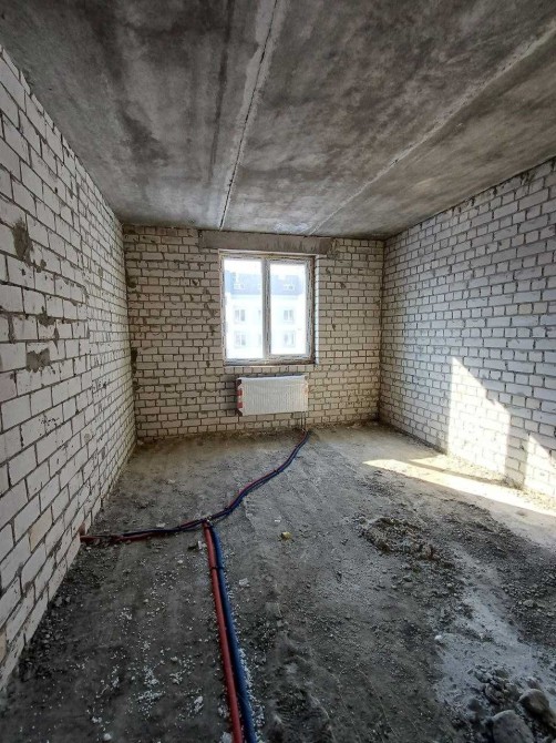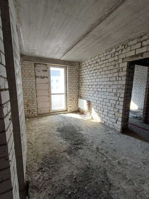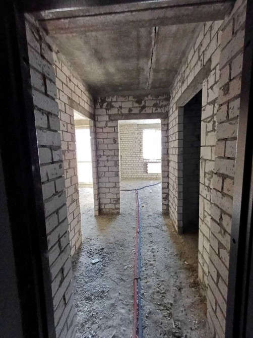 Квартира в строительном состоянии: МПО, межкомнатные перегородки, радиаторы отопления установлены и подключены, канализация, электричество, фасад утеплён минеральной ватой.